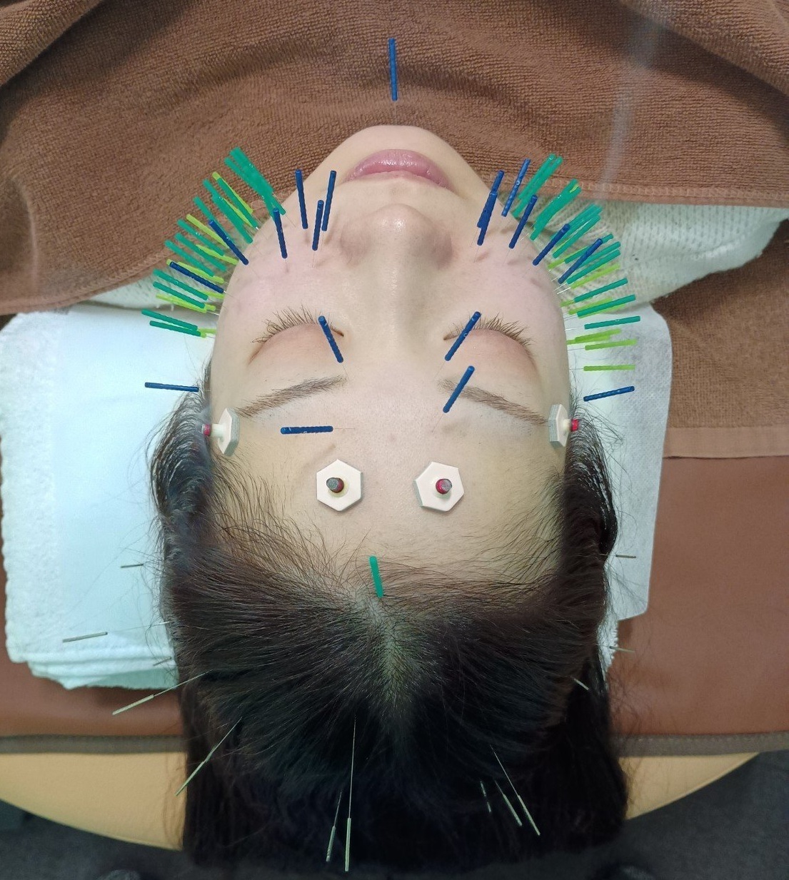 問診で教えてもらった内容をもとに美容鍼灸を行っています。鍼を刺すときに少しだけ痛みがありますが当院で使用している鍼は美容鍼専用の鍼なので通常の鍼より痛みが少なくなります。また置鍼中(鍼を刺したままおいておくこと)に自分のお顔の写真も撮ることも可能なのでご希望の方はスタッフまでお申し付けください。