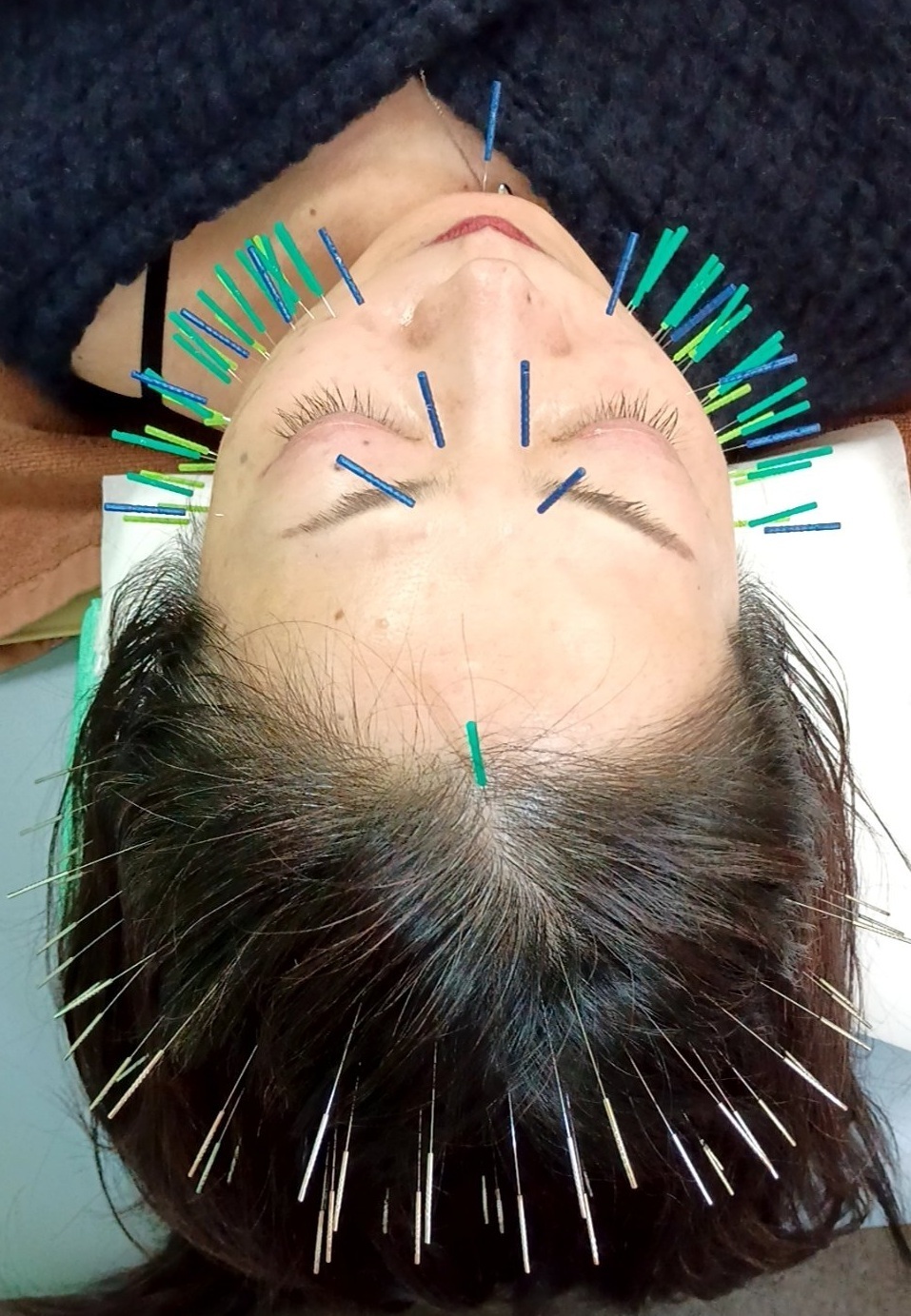 頭部に多数の鍼を打つことで毛根に刺激を与え、血流を改善させ、新陳代謝を促します。頭皮の状態が良くなることで育毛・発毛が促進され健康的な頭髪へ導きます。