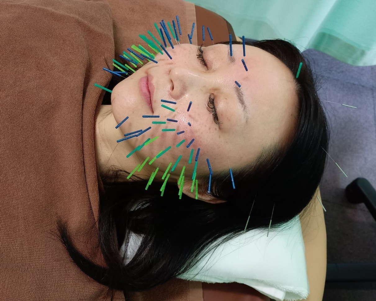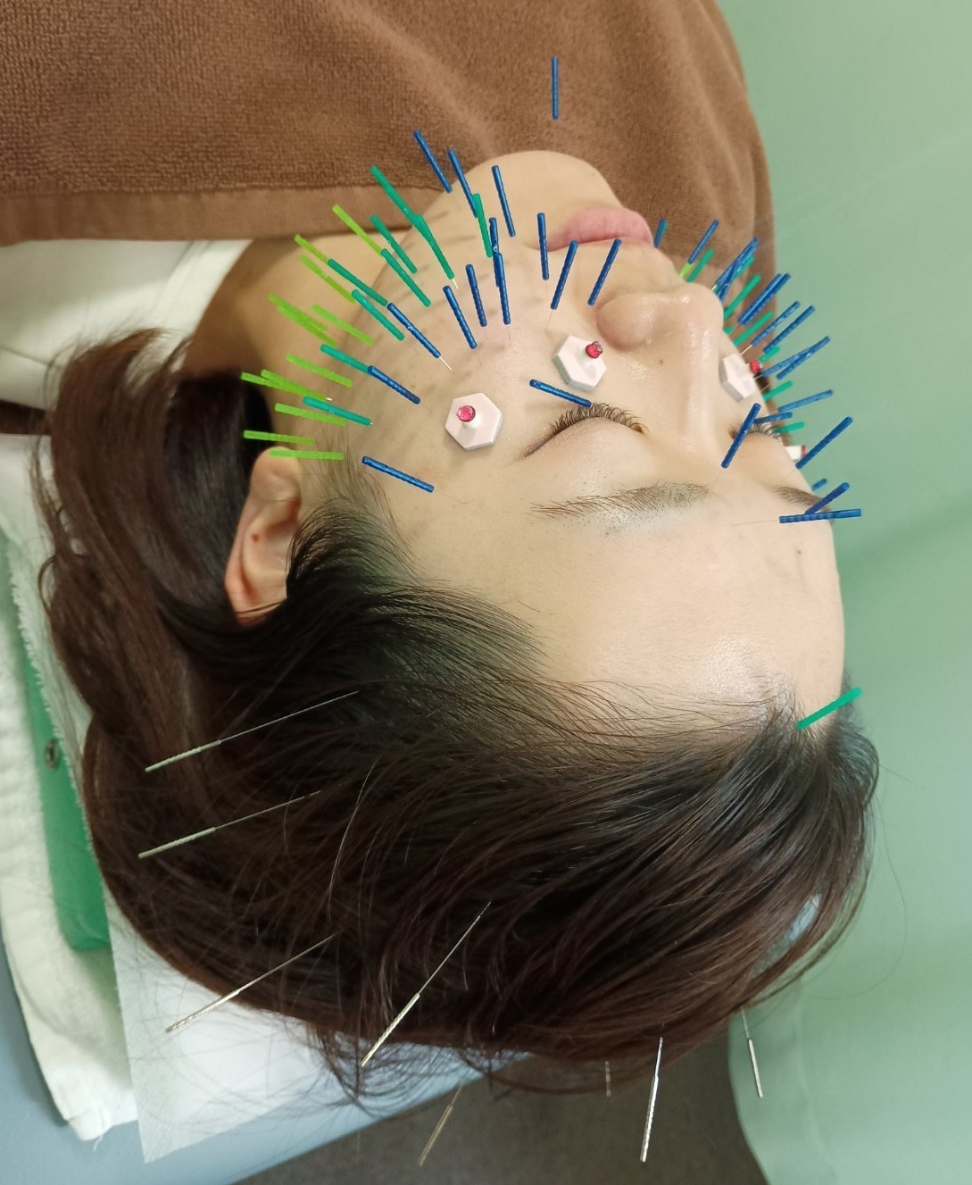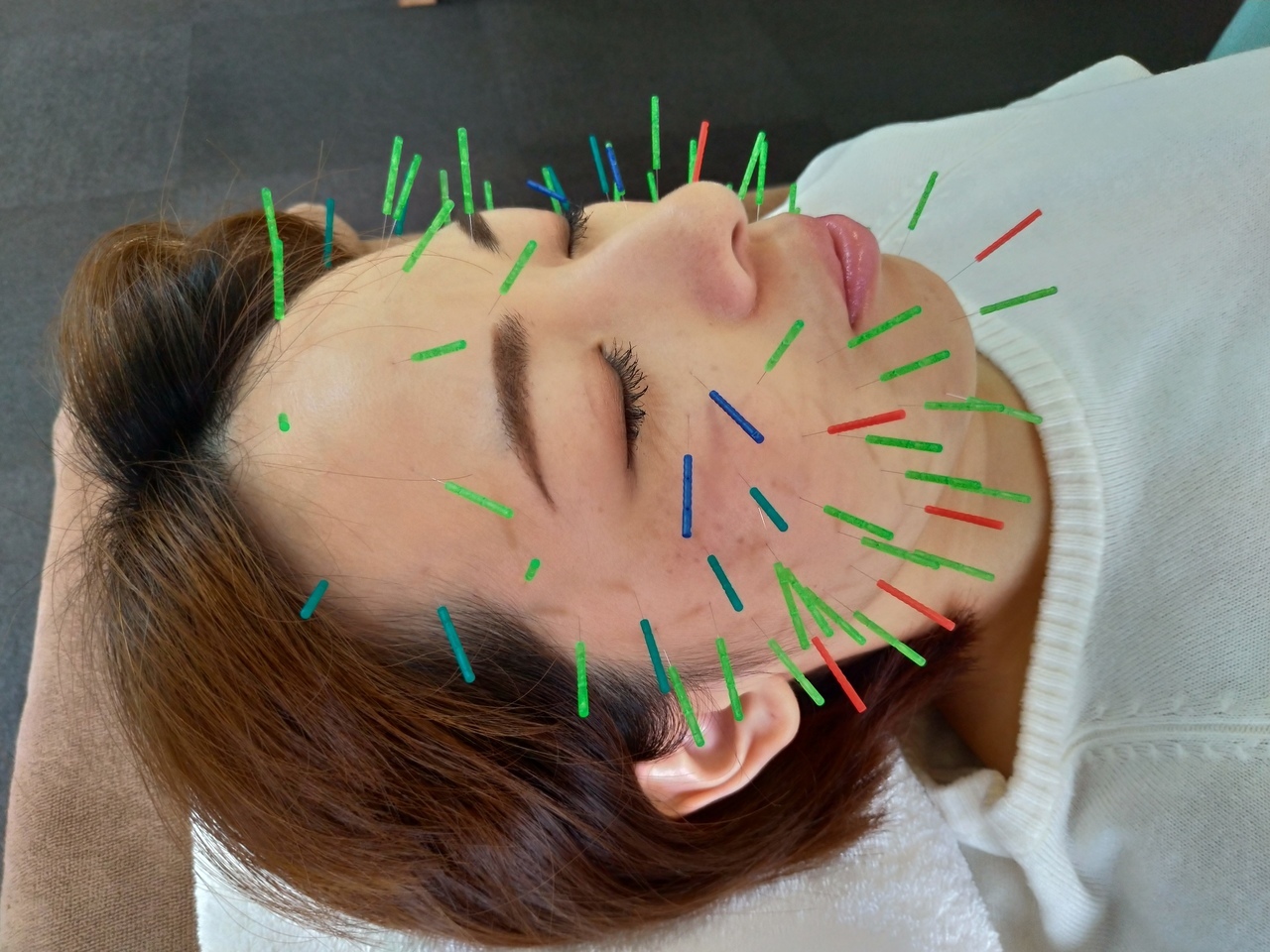 問診で教えてもらった内容をもとに美容鍼灸を行っています。鍼を刺すときに少しだけ痛みがありますが当院で使用している鍼は美容鍼専用の鍼なので通常の鍼より痛みが少なくなります。また置鍼中(鍼を刺したままおいておくこと)に自分のお顔の写真も撮ることも可能なのでご希望の方はスタッフまでお申し付けください。